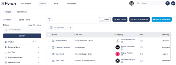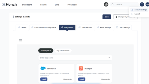 Make the transfer of data from Honch to Salesforce simple with 1-click transfer of contacts.