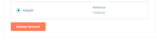 You'll be asked to grant access and will see an external window from Hubspot to confirm you want to give Honch access, and make sure you're connecting the right account: